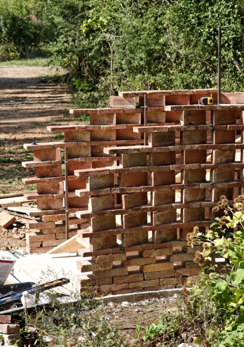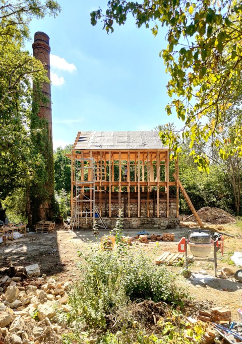 Réemploi : Restructuration du four d’une ancienne tuilerie. Réemploi de tuile pour les toilettes sèches