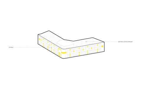Volume harmony, smart sustainability : this office project is noteworthy in many respects. Designed with a real concern for functionality, this flowing building blends with a chaotic environment, thus addressing the challenges of a complex urban plot. The building envelope reduces effectively the amount of energy needed to run the building. For the first time in France, the energy produced on site is directly used in the building. Thanks to this remarkable energetic performance, the project has been labeled as the first self-sufficient building. The electricity produced by photovoltaic sensors on the roof is used straightaway within the premises.