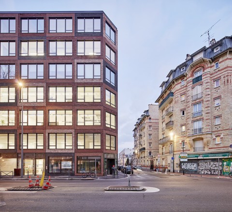 Contextuel, peu bavard, voire silencieux, ce projet tertiaire met en exergue cette recherche qualitative de la mise en œuvre de la brique comme un hommage aux architectures de Malakoff et des banlieues « rouges » tel l’immeuble de logements très composé et dessiné qui lui fait face Avenue Augustin Dumont avec cette richesse de nuances impressionnante jusque dans les aplats.