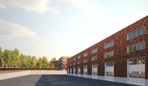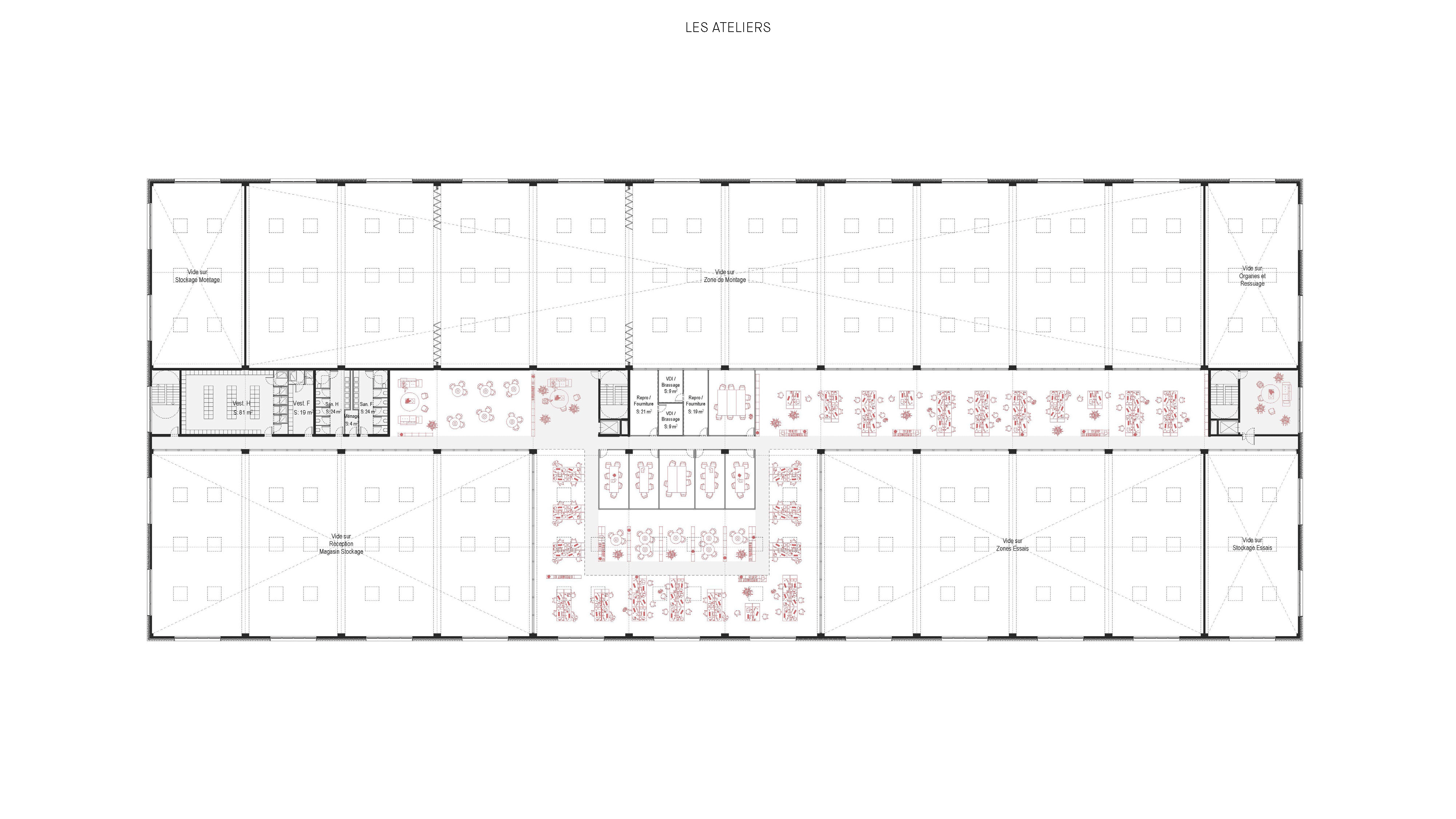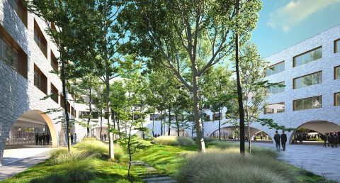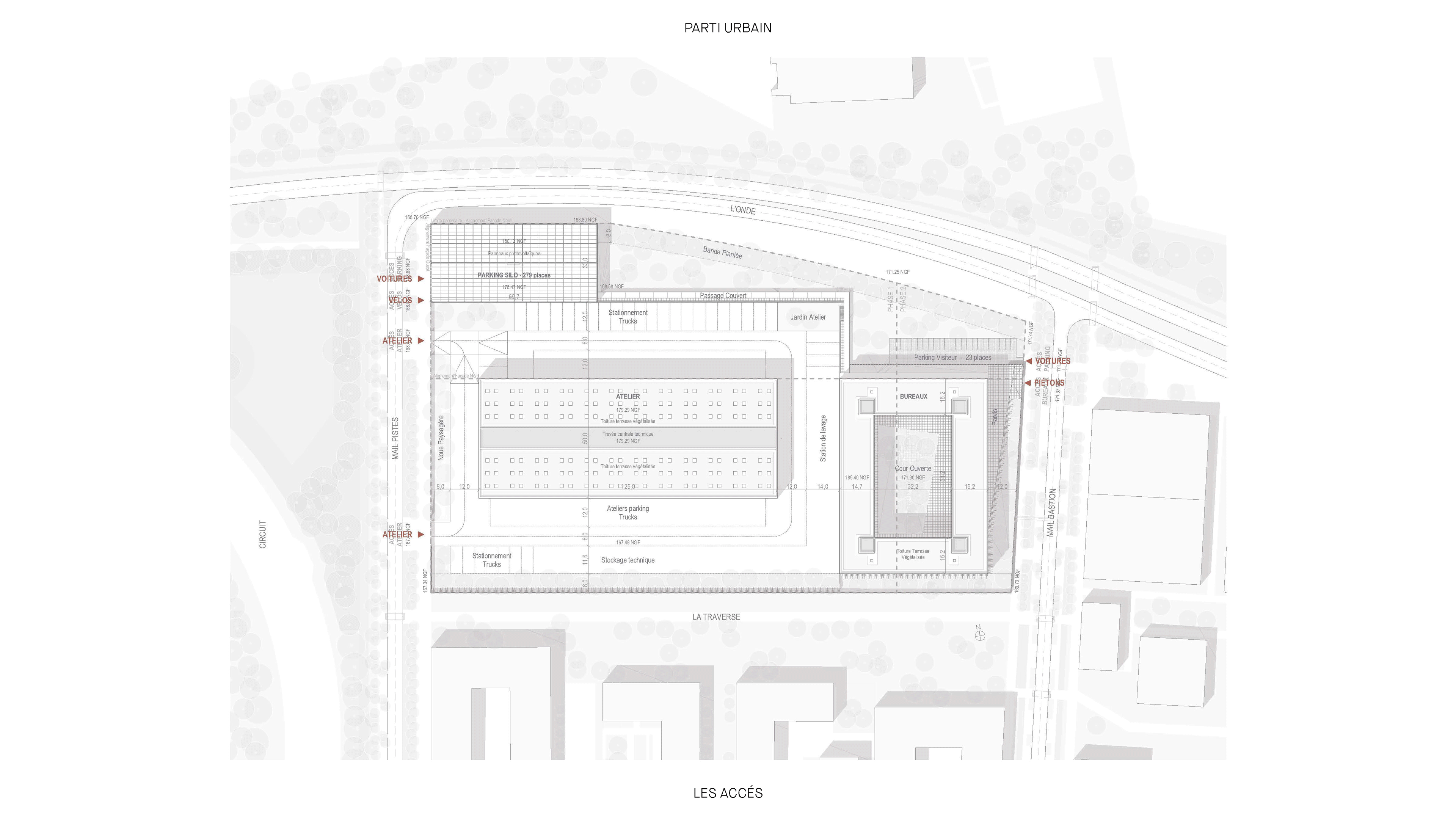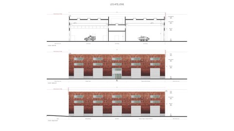 Nous avons conçu ces trois bâtiments comme faisant partie d’une famille. Ils forment une composition cohérente et homogène. Les trois bâtiments, pensés avec des façades pleines, percées de baies régulières, revêtues de briques pleines protégeant une isolation par l’extérieur, reprennent un langage d’expression de façade commun dans une logique de déclinaison adaptée à chaque usage.