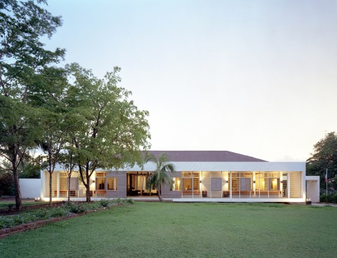 Ambassadors’ houses are at the same time a space for official representation, which requires a functionality and efficiency, and a comfortable place for a family to live in. The volumes of the project are simple : the rectangular plan is reinforced by homogeneous façades and the central patio. On the ground floor, the four main units of the building are connected around the patio by a gallery. They are clearly identifiable : the reception hall, the ambassador’s family place, the minister’s suite and the services room.