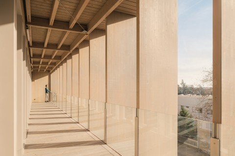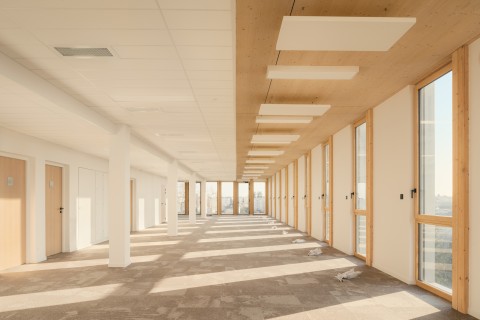 Ressource : Structure mixte bois béton. Poteaux poutres dalles bois avec noyau béton.
