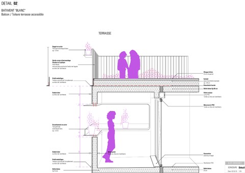 Les terrasses deviennent le support de nouveaux usages. Notre projet se décompose en deux immeubles–ilots distincts. Ces deux immeubles recevront respectivement un traitement différent des terrasses, en développant les deux concepts suivants:
