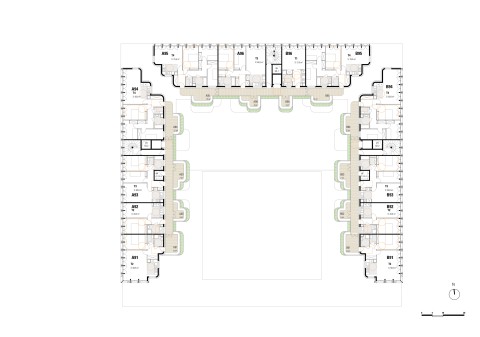 Notre projet, « figure en U », apporte une réponse singulière aux futurs résidents et offre un cadre de vie inédit basé sur un mode d’habiter plus participatif. Cette proposition permet de réaliser des logements au confort de vie optimum, tout en installant une école en son centre.