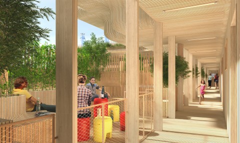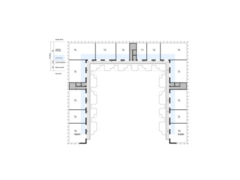 La distribution par coursives extérieures permet à la totalité des logements de bénéficier d’espaces traversants et de pièces d’eau éclairées et ventilées naturellement. Les espaces extérieurs privés se trouvent de l’autre côté de la coursive. Celle-ci devient un lieu partagé permettant de véritables échanges entre voisins.