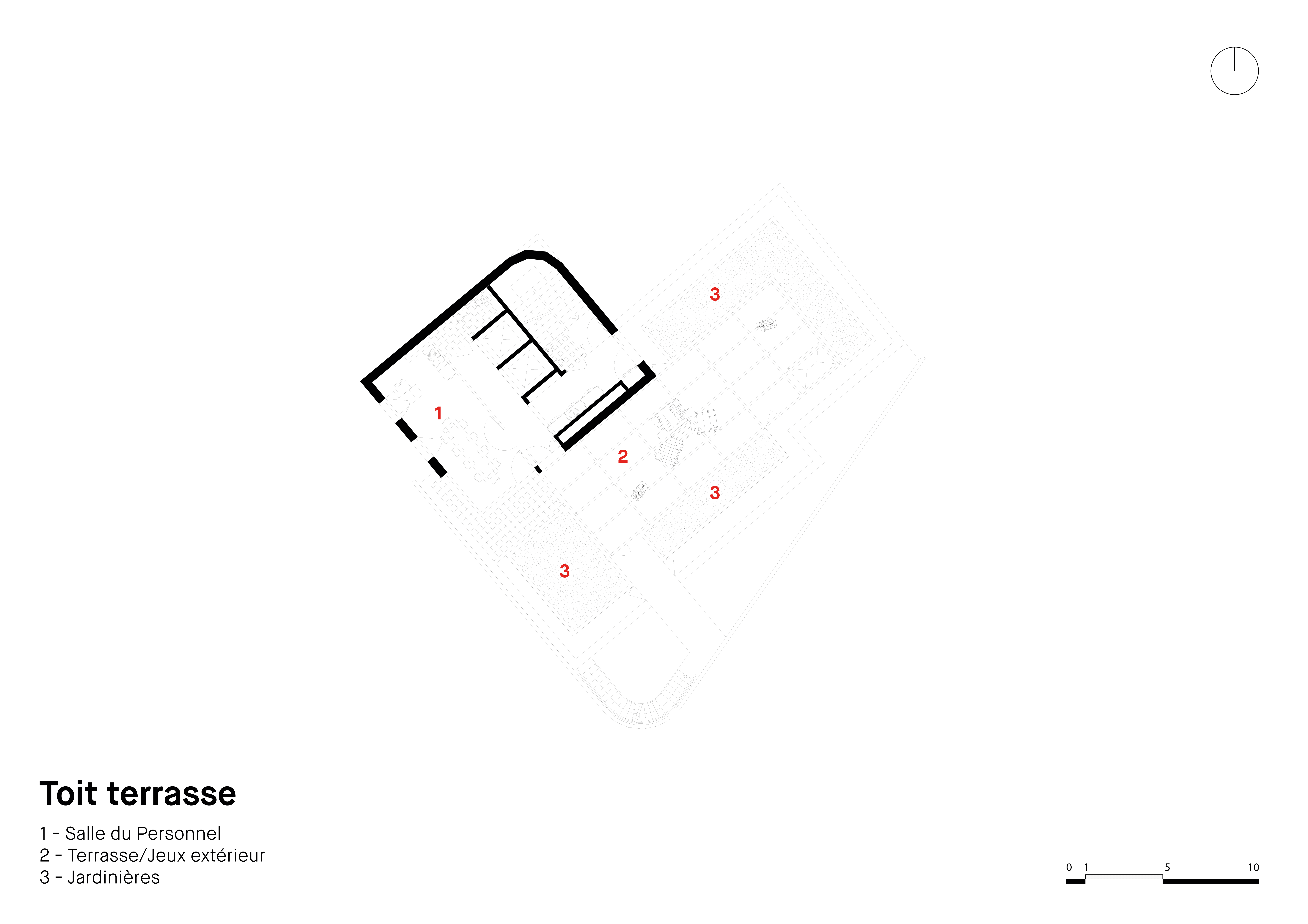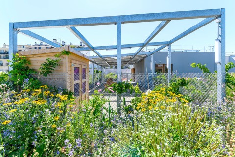 Usage : Grande terrasse sur le toit avec potager urbain.