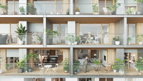 Un projet de logements collectifs qui rompt avec les habitudes de conception traditionnelles. Soit, un système fondé sur une pensée constructive qui permettra de bénéficier de logements tous traversants. Le bâtiment se présente comme un immeuble à patio ; des balcons filants ceinturent l’intégralité des volumes en étages. Ces balcons sont rendus sous forme de loggias grâce à des rangements extérieurs formant séparatifs.