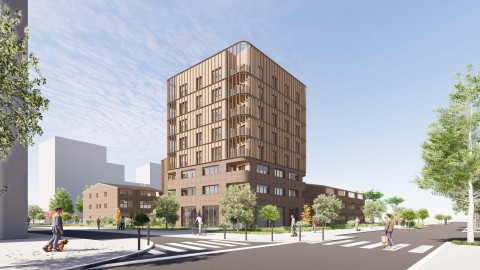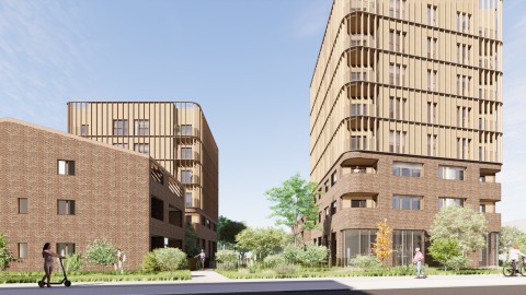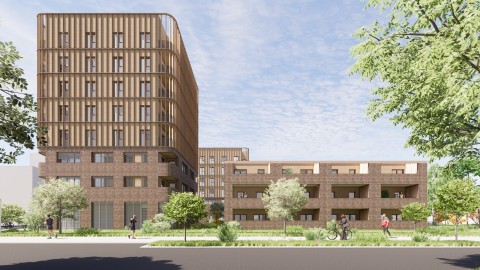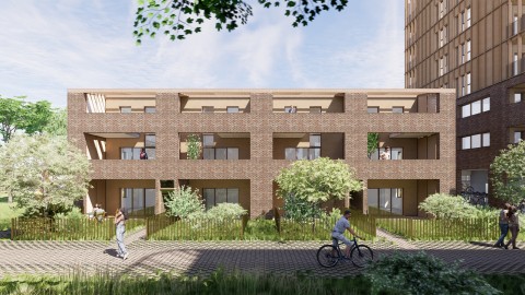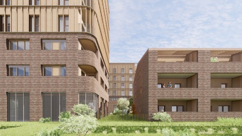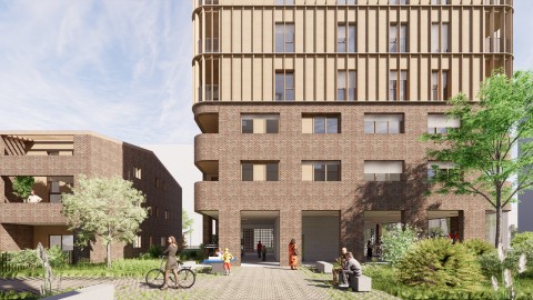 Les plots horizontaux constitués par des logements intermédiaires, dont l’architecture identifiable évoque des « fermes ».